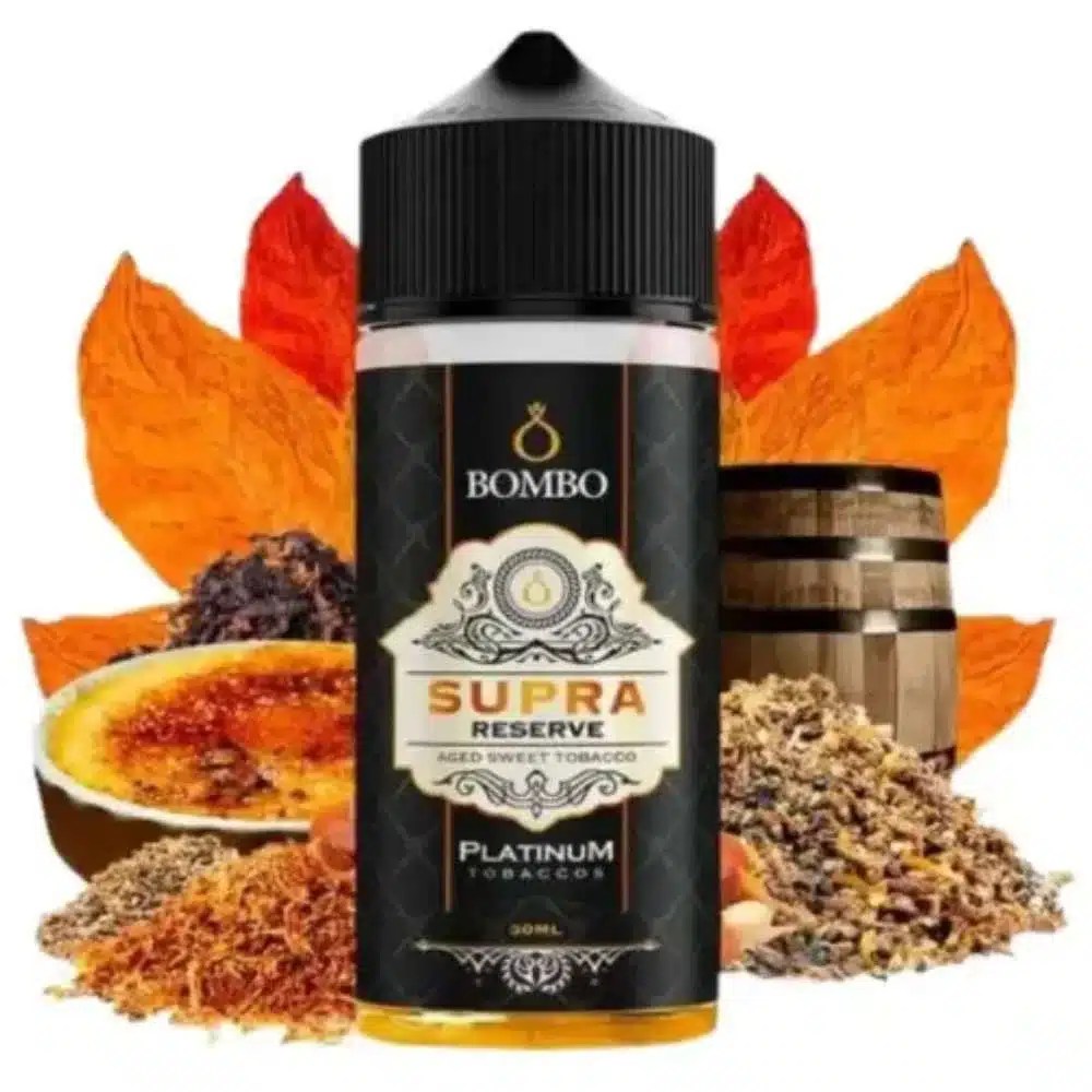 Bombo nos presenta sus nuevos formatos Longfill, sus míticos aromas en formato 30 ml, ahora en botes de 120 ml que incluyen 30 ml de aroma para que solo tengas que añadir base y listo. Supra Reserve Platinum 30ml, es la base del mejor tabaco dulce con equilibrados matices acaramelados y tostados que hacen de esta receta una auténtica exquisitez para el paladar.