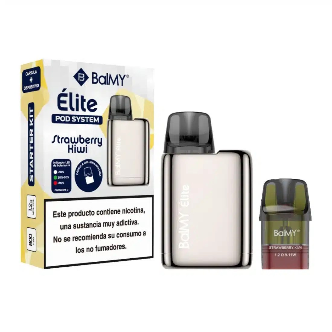 Pod Recargable Balmy Élite Kit + Strawberry Kiwi 20mg by Balmy increíble combinación frutal entre la dulces fresas y el suave kiwi que lo hacen un sabor perfecto para vapearlo todo el día.