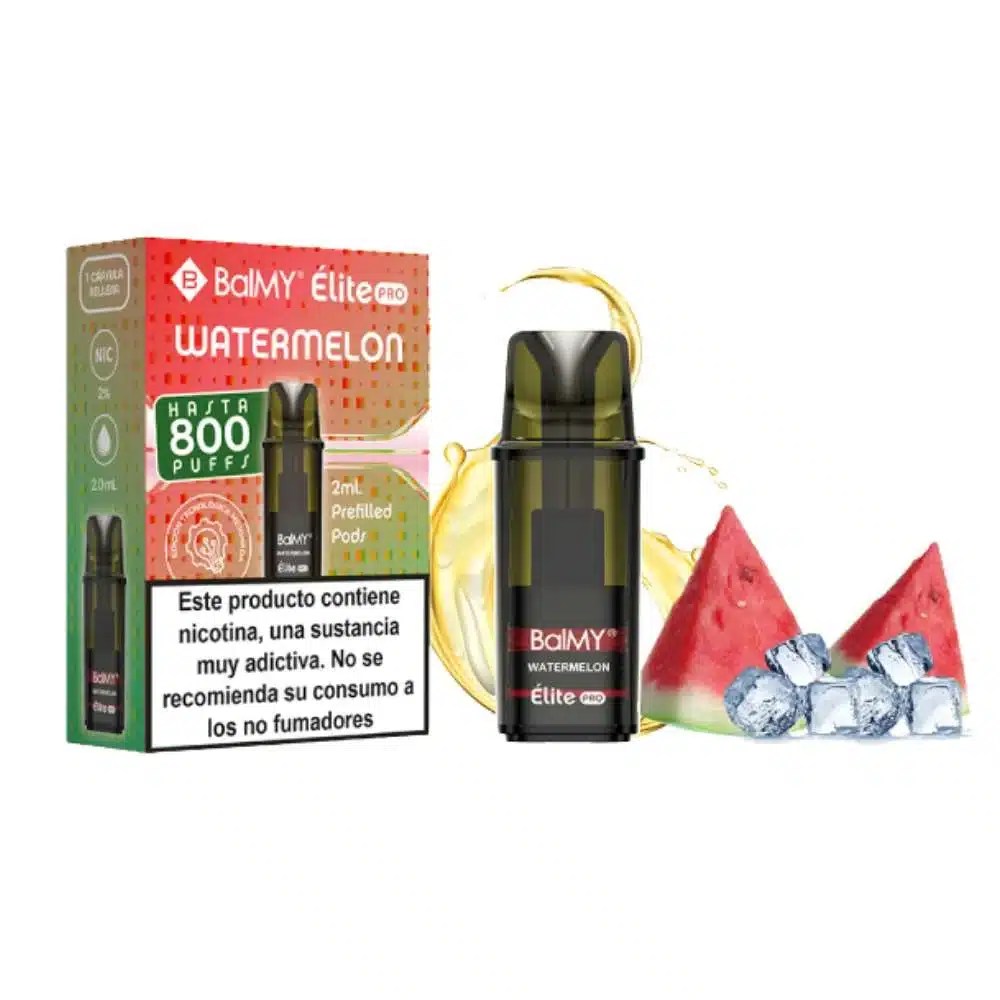 Starter Kit BalMY Élite PRO Watermelon formados por dispositivo recargable y cápsula precargada con 20 mg/ml nicotina sabor sandía.