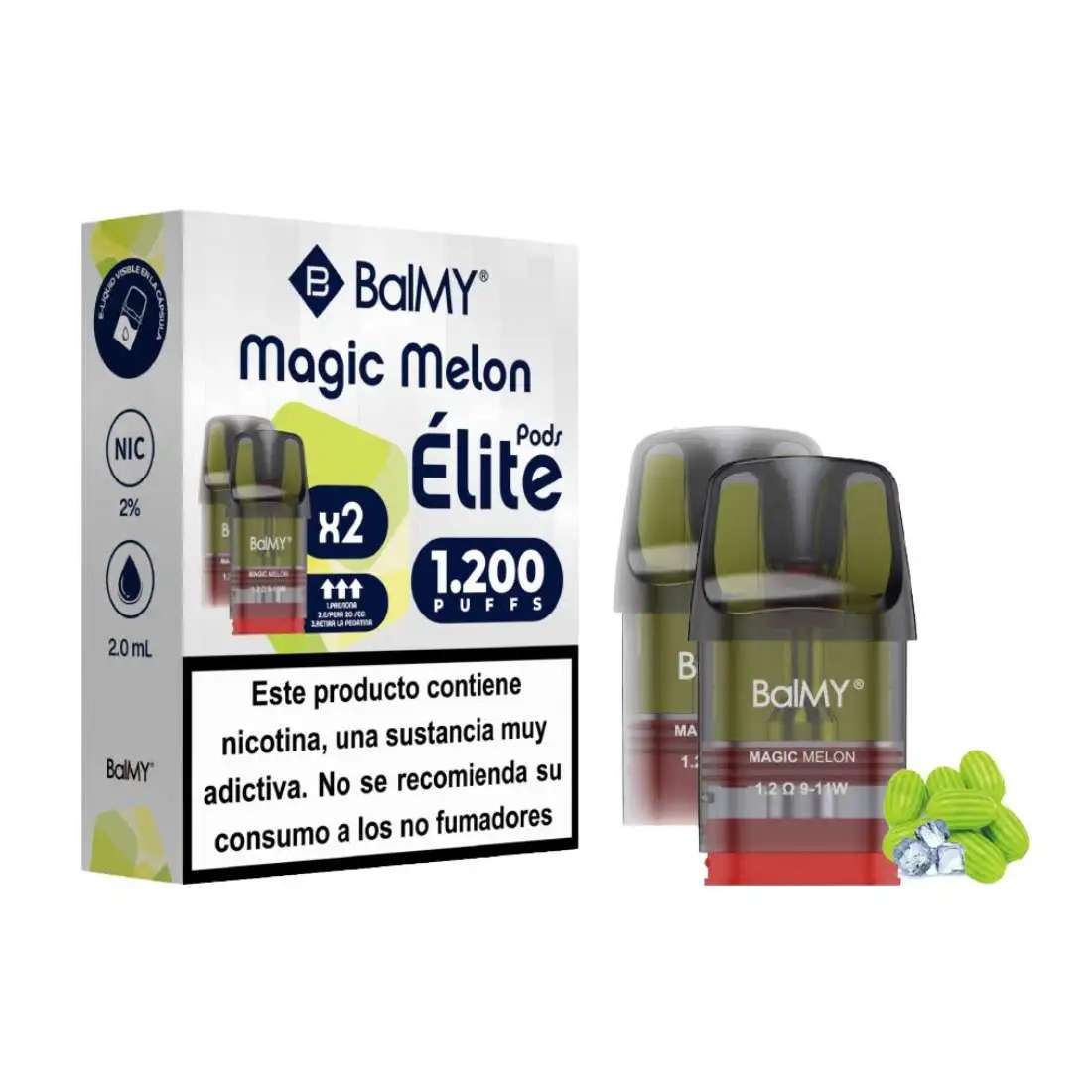Recambio Pod Recargable Élite Magic Melon 20mg by Balmy un increíble y sabroso chicle de melón que junto al toque fresco del hielo te deleitará el paladar.